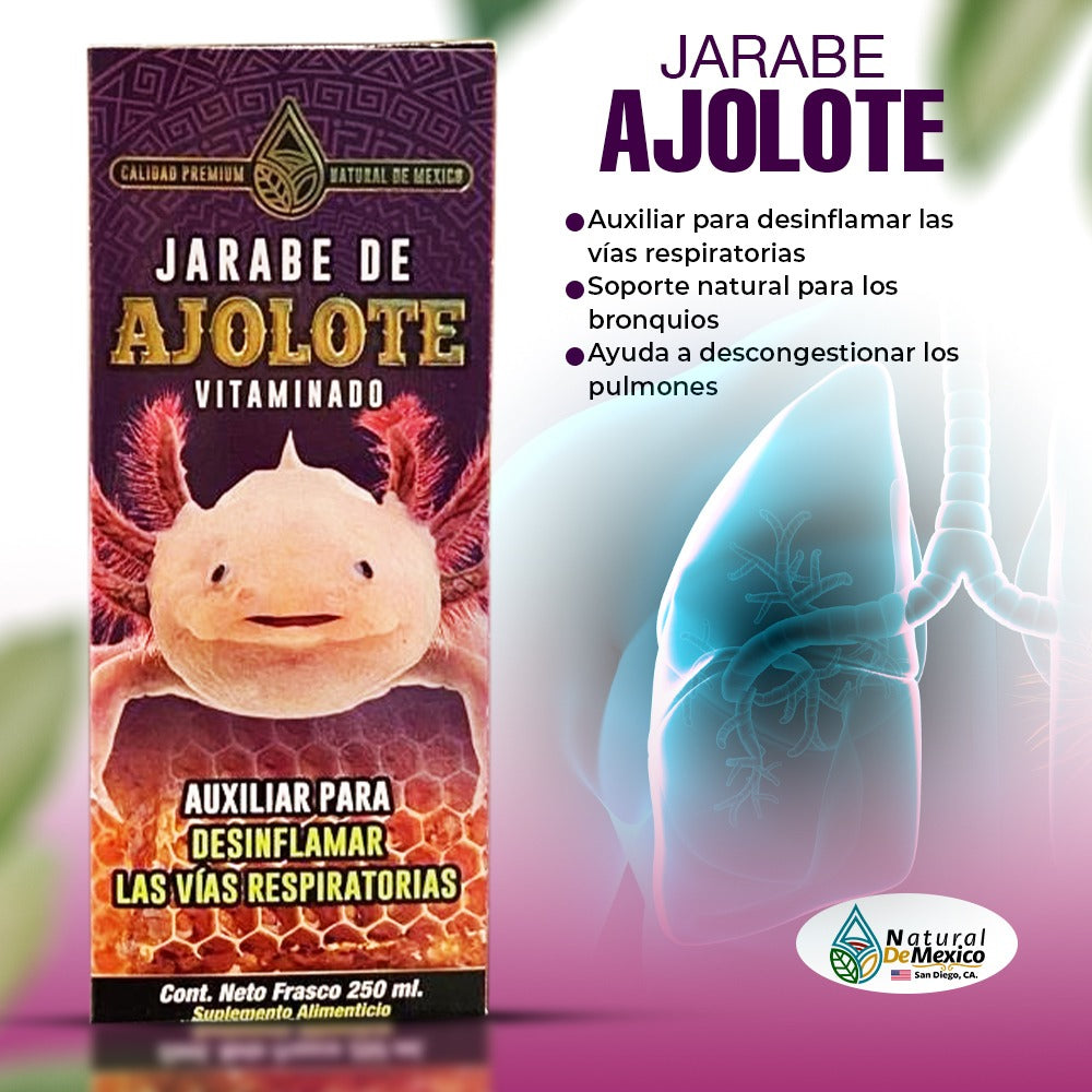 Jarabe de Ajolote Vitaminado 250ml Ayuda a Desinflamar Vias Respiratorias Sporte Bronquios